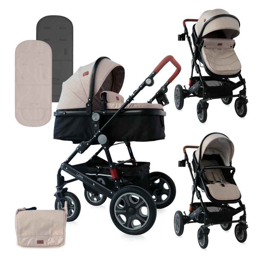 Carucior transformabil 2 in 1 cu sezut reversibil Lora Beige Black Dots