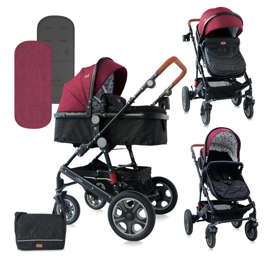 Carucior transformabil 2 in 1 cu sezut reversibil Lora Red Black Lighthouse