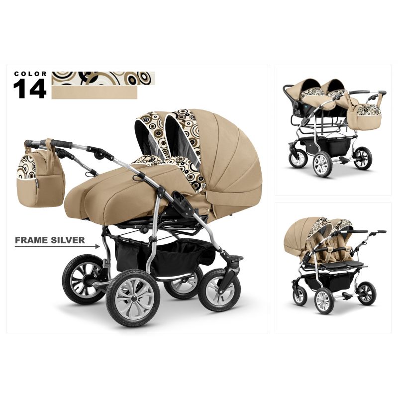 Carucior 3 in 1 pentru gemeni Mikado Duet Lux D-14 Beige