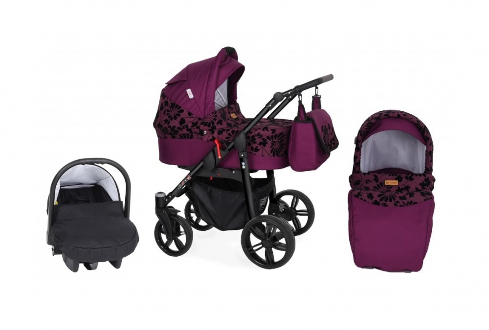 Carucior 3 in 1 modular Kunert Silver Black frame Flowers