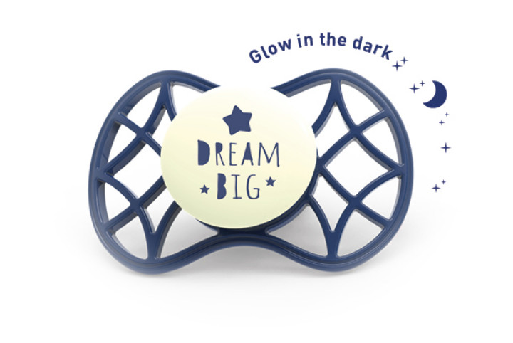 Suzeta ortodontica de noapte cu capac protector 6 luni+ Nuvita Air 55 Cool Glow Blue Moon 7085