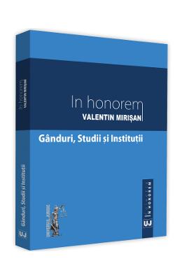 In honorem Valentin Mirisan. Ganduri, studii si institutii Pentru noi, toti cei care constituim comunitatea academica a Facultatii de Drept din Oradea, este o datorie de onoare sa exprimam consideratiunea si multumirea noastra catre decanul nostru Valentin Mirisan, sub forma volumului de fata. Totodata, aducem intre copertile sale si consideratiunea universitara exprimata de colegii nostri – profesori din alte centre universitare, din tara (Cluj-Napoca, Alba-Iulia, Targu-Mures) si din strainatate (Heidelberg, Miskolc, Szeged). Cu plecaciune, multumim tuturor celor care au contribuit la publicarea volumului de fata! – Conf. univ. dr. Cristian Dumitru MIHES, decanul Facultatii de Drept