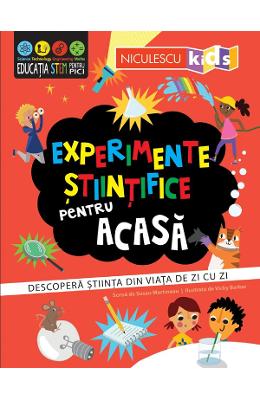 Experimente stiintifice pentru acasa. Descopera stiinta din viata de zi cu zi Te invit sa descoperi stiinta din viata de zi cu zi in experimente simple pe care le poti face la tine acasa. Fiecare activitate are scopul de a te ajuta sa intelegi mai usor mediul inconjurator, o anumita notiune si stiinta care exista in spatele oricarui fenomen. Iar tu, micule cercetator, vei fi incantat sa descoperi cum si de ce au loc anumite fenomene fizice si chimice, precum si sa vezi ca stiinta nu este ceva abstract, ci se regaseste in viata noastra cotidiana. Ilustratii de Vicky Barker