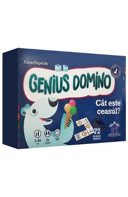 Seria Genius Domino ofera jocuri distractive si didactice care sunt variatii ale jocului clasic de domino. Aceste jocuri sunt excelente pentru sustinerea invatarii si a automatismelor, in special in calculele matematice. Cele 72 de piese domino, pot fi grupate pe niveluri de dificultate, astfel incat sa puteti organiza usor activitati personalizate. Genius Domnino – Cat este ceasul? cuprinde exercitii pentru invatarea citirii ceasurilor analog si digital, precum si a expresiilor textuale folosite in citirea ceasului. Varsta recomandata: 5-99 ani Numar jucatori: 2+ Timp de lucru: 15 minute Contine: 72 de piese domino cartonate + regulile jocului