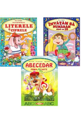 Acum si in Romania cartile celebrului ilustrator din Republica Moldova, Petru Ghetoi! Pachetul contine 3 carti, fiecare avand 28 de pagini: • Abecedar. Prima mea carte .Cu ajutorul poeziilor amuzante si a ilustratiilor minunate din aceasta carte, copiii vor invata sa identifice si sa scrie literele caligrafic, de mana. • Invatam impreuna literele si cifrele .Lucrarea se adreseaza deopotriva prescolarilor care se pregatesc pentru ciclul primar, dar si elevilor din clasa pregatitoare. Prin intermediul jocurilor, poeziilor si activitatilor incluse in carte, copiii se vor familiariza cu literele si cifrele rezolvand diverse sarcini. • Invatam sa numaram pana la 10. Prin intermediul jocurilor, poeziilor si activitatilor incluse in carte, copiii se vor familiariza cu cifre …