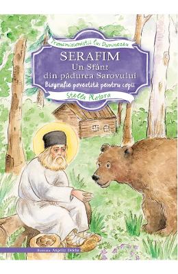 Serafim, un sfant din padurea Sarovului. Biografie povestita pentru copii Sfantul Serafim de Sarov, unul dintre cei mai mari sfinti ai Ortodoxiei, a trait in Rusia inainte cu aproape doua sute de ani. Inima sa fierbinte, cu care cuprindea intreaga lume, a fost un locsor dulce pentru copii! Sfantul a fost prietenul si ocrotitorul lor in orice imprejurare, dar si medic facator de minuni pentru bolile lor. El a fost cel care i-a invatat ca omul, cu ajutorul rugaciunii si al increderii totale in Dumnezeu, poate sa treaca peste orice greutate. Era modest, desi avea parte de multe laude. Era bucuros, desi veneau peste el multe necazuri si ispite. Cu toate acestea, obisnuia sa salute pe oricine-i iesea in cale cu: Hristos a inviat, dragul meu!. Titlul seriei Transmisionistii lui Dumnez …