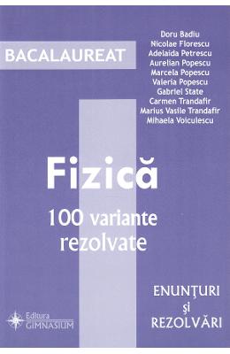 Bacalaureat. Fizica. 100 variante rezolvate. Enunturi si rezolvari Pentru a veni in sprijinul vostru, (…) am reeditat acest ghid practic de rezolvare a celor 100 de variante de subiecte publicate de Minister. Ghidul cuprinde variantele rezolvate pentru: Optica, Mecanica, Producerea si utilizarea curentului continuu, si Notiuni de termodinamica. Ghidul nostru se adreseaza in primul rand elevilor, dar in egala masura profesorilor, constituind un util instrument de lucru, oferind modele de rezolvare a subiectelor. – Autorii Autori: Doru Badiu, Nicolae Florescu, Adelaida Petrescu, Aurelian Popescu, Marcela Popescu, Valeria Popescu, Gabriel State, Carmen Trandafir, Marius Vasile Trandafir, Mihaela Voiculescu