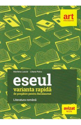 Lucrarea Eseul. Varianta rapida de pregatire pentru Bacalaureat. Literatura romana propune o metoda rapida si eficienta de pregatire a eseului structurat, subiectul cu cea mai mare complexitate din cadrul probei scrise de limba si literatura romana. Ca sa asimileze cat mai multe informatii, corect si intr-un timp cat mai scurt, candidatii trebuie sa parcurga doua etape, concretizate in: 1. planul eseului, in care sunt sistematizate cele mai importante idei ce trebuie abordate; 2. eseul propriu-zis, in care sunt dezvoltate ideile din plan, respectand cele patru repere obligatorii din cerinta subiectului. Materia pentru examen este, astfel, pusa la dispozitia elevilor intr-o forma esentializata, organizata si accesibila, ideala pentru recapitularea cunostintelor si pentru fixarea celor …