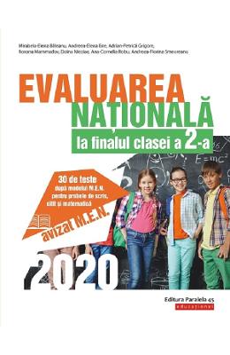 Evaluarea Nationala 2020 la finalul clasei a II-a. 30 de teste dupa modelul M.E.N. pentru probele de scris, citit si matematica Avizat M.E.N. Lucrarea de fata se adreseaza elevilor de clasa a 2-a in vederea sustinerii cu succes a probei de evaluare a competentelor generale si specifice la finalul anului scolar. Proba consta in administrarea a trei teste vizand evaluarea competentelor de receptare a mesajelor citite, evaluarea competentelor de producere a mesajelor scrise si evaluarea competentelor de matematica. Testele propuse respecta intru totul standardele metodologice elaborate de Ministerul Educatiei Nationale. Aceasta evaluare are deja o traditie de cativa ani in invatamantul romanesc. Ea nu reprezinta un examen sau un concurs, ci are un caracter formativ, de diagnoza …