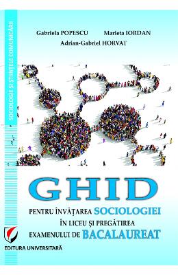 Ghid pentru invatarea sociologiei in liceu si pregatirea examenului de bacalaureat Autori: Gabriela Popescu, Marieta Iordan, Adrian-Gabriel Horvat Prezenta lucrare se adreseaza in egala masura atat elevilor de la profilul uman care studiaza sociologia in liceu, cat si profesorilor care predau aceasta disciplina. Continutul ghidului respecta cu fidelitate programele de studiu si de bacalaureat, fiind un instrument util in pregatirea elevilor din clasa a XI-a, dar si a celor din clasa a XII-a care opteaza pentru sustinerea probei scrise la alegere la disciplina sociologie. Lucrarea este structurata in trei parti. Partea I cuprinde reperele teoretice prevazute de programele de studiu si de bacalaureat, acestea fiind insotite de un numar generos de exercitii si activitati de invatar …