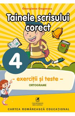Tainele scrisului corect. Exercitii si teste pentru clasa a IV-a. • Ortograme Lucrarea de fata, TAINELE SCRISULUI CORECT, Clasa a IV-a , este un auxiliar didactic, un instrument util cadrului didactic, dar mai ales elevului, fiind parte componenta a unui grupaj de lucrari alcatuite coerent, sprijinindu-se pe recomandarile Ministerului Educatiei Nationale cuprinse in programele de invatamant si pe metodologiile didactice diseminate in cadrul inspectoratelor scolare si cercurilor pedagogice, la care s-au adaugat experienta si competenta autoarei. Auxiliarul cuprinde un demers didactic care porneste de la activitati deInvatare ce permit insusirea, accentuarea, aprofundarea si extinderea notiunilor de limba – ortografie, fiind schematizat pe zone, astfel: DESCOPAR!, MA INFORMEZ! …