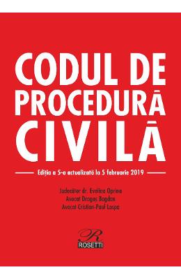 Codul de procedura civila. Cu modificarile aduse prin Legea nr. 310/2018 Editia a 5-a actualizata la 5 februarie 2019 In anexa: ♦ O.U.G nr. 80/2013 privind taxele judiciare de timbru ♦ O.U.G. nr. 51/2008 privind ajutorul public judiciar in materie civila Autori: Dragos Bogdan, Evelina Oprina, Cristian Paul Lospa