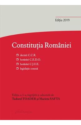 Constitutia Romaniei. Editia a 3-a. Decizii ale Curtii Constitutionale, hotarari C.E.D.O., hotarari C.J.U.E., legislatie conexa In ierarhia normativa a oricarui stat de drept, Constitutia reprezinta documentul juridic fundamental, in care sunt consacrate drepturile, obligatiile si indatoririle cetatenesti, principiile si regulile de organizare a statului si a autoritatilor publice. Aflata intr-o conexiune stransa cu intregul ansamblu legislativ subsecvent, Constitutia determina, totodata, cadrul si limitele procesului de legiferare si constituie reperul de baza in activitatea de interpretare si de aplicare a normelor legale. In acest context, aducem in atentia cititorilor Constitutia Romaniei – decizii ale Curtii Constitutionale, hotarari C.E.D.O., hotarari C.J.U.E., legislati …