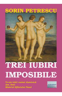 Cartea Trei iubiri imposibile va ofera trei povesti de dragoste altfel decat au fost scrise vreodata: dragostea dintre o reportera si un campion de tenis, dintre un artist si personajul sau si cea dintre Iisus si Magdalena. Scrise intr-un stil simplu si cuceritor, povestirile te fac uneori sa lacrimezi, alteori sa surazi, dar mereu sa-ti doresti sa traiesti tu insuti o asemenea iubire! Si la sfarsitul cartii iti mai doresti ceva: ca sa fi fost mai multe iubiri imposibile si cartea sa nu se fi terminat asa de repede. Paradoxul acestor povestiri este ca o iubire imposibila devine posibila numai prin… iubire! Si atunci vechiul slogan ar suna in felul urmator: Pana cand nici moartea nu ne va desparti! Te-am iubit numai duminica Ave, Eva! Misterul Sfantului Pavel