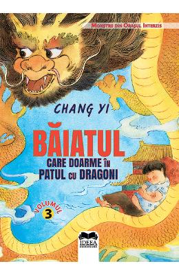 Baiatul care doarme in patul cu dragoni este al treilea volum din seria Monstrii din Orasul Interzi s Povesti fantastice petrecute in Orasul Interzis, o fata plina de curiozitate,o pisica jurnalista de vita nobila,o gasca de monstri simpatici,te poarta intr-o aventura prin misteriosul Oras Interzis. Cerule, sa fi dat peste o fantoma?In patul imparatesc cu dragoni doarme un baietel! Cum se poate la ora aceasta si in acest loc sa apara in Sala imparateasca a Innobilarii Sufletului?Pana la urma e om sau fantoma? Urmarit de politie, inhatat de Zeul Zapezii … acesta ii da destula bataie de cap lui Li Ploicica.Totodata, impreuna ii ajuta pe monstrii sa dezlege misterul florii sacre Udumbara, rezolva un caz de jaf intamplat pentru prima data in Orasul Interzis in ultimii o mie de an …