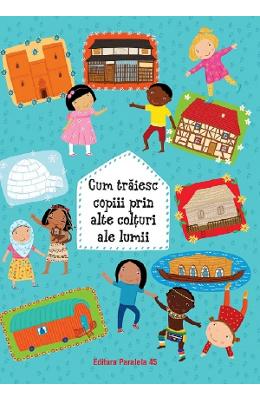 Te-ai intrebat vreodata cum traiesc copiii din alte tari? Aceasta carte iti ofera sansa sa patrunzi in locuinte de pe toate continentele si sa vezi cat de diferite pot fi vietile copiilor. Oamenii isi construiesc casele cu materialele specifice zonei in care locuiesc, asigurandu‑se ca traiul zilnic sa fie confortabil. Stii cum traiesc copiii in Mongolia? Sau cum e viata intr-un iglu? Dar intr-o padure tropicala? Hai, arunca o privire in carte! Micutii pe care ii vei intalni aici iti vor spune tot ce stiu ei despre cultura lor. Ce zici, esti gata? Ilustratii de Michaela Bergmannova
