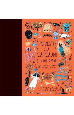 Povesti cu capcauni si vrajitoare.50 de basme si legende din lumea intreaga Fantome, capcauni, vrajitoare, goblini, strigoi – pregateste-te sa descoperi o lume intreaga de personaje supranaturale, intr-o superba carte-cadou numai buna de citit de Halloween sau in noptile cu luna plina! 50 de povesti adunate de pe toate continentele iti aduc mai aproape fapturile legendare care, de-a lungul timpului, au inflacarat imaginatia oamenilor: frumoasa Vasilisa si infricosatoarea Baba Iaga din Rusia, grozavul Print Sarpe din India, fiorosul cal-de-apa din Scotia, fantomatica Doamna de Gheata din Japonia. Minunatele desene ale ilustratoarei Madalina Andronic dau culoare povestilor si le adancesc misterul.