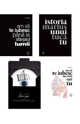 Pachetul Am sa te iubesc pana la sfarsitul lumii de Marius Tuca contine trei carti si un audiobook in lectura autorului. • Am sa te iubesc pana la sfarsitul lumii (editia 7, 144 pagini) • Istoria unui Tu.(82 pagini) • Am sa te iubesc pana la sfarsitul lumii (80 de pagini) • Audiobook Am sa te iubesc pana la sfarsitul lumii (durata cd-ului: 78 ore si 87 minute, in lectura autorului) Suflet Avea un suflet Atat de frumos, incat M-am indragostit de el Inainte sa ma Indragostesc de ea.