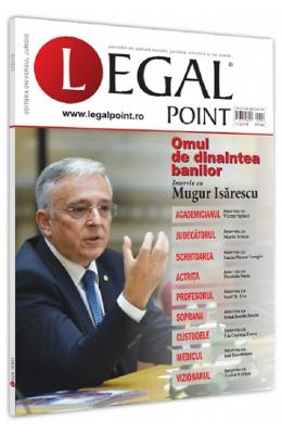Legal Point • Este o revista a dialogului, in care spatii largi sunt consacrate interviurilor. • Incurajeaza dezbaterea relaxata, bazata pe forta argumentelor si cunoasterea nemijlocita. • Prezinta cititorilor sai modele de cariera, oferind ample interviuri cu cele mai stralucite personalitati, atat din dreptul romanesc, cat si din alte domenii, cu povestile lor de viata impresionante. Povestile de viata ale oamenilor din justitie sunt sustinute grafic de portretele realizate de colegul nostru, graficianul Ovidiu Iovanel. • Prilejuieste cititorilor sai reintalnirea cu marii profesori de drept ai Romaniei, cu profesionisti care au marcat istoria recenta a dreptului romanesc in sectiunea „Seniorii Dreptului”. • A aparut din necesitate …